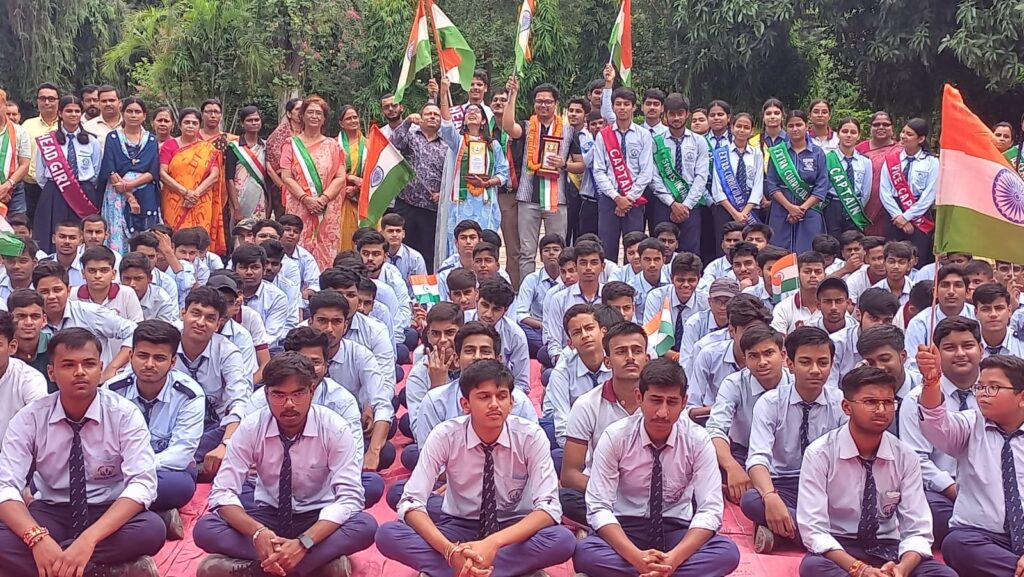 Our school celebrated the Har Ghar Tiranga campaign with great pride and patriotism. The program aimed to encourage students to hoist the national flag at their homes and understand its significance. The celebration began with the national anthem followed by speeches and patriotic songs that filled everyone’s hearts with love for the nation. Students participated in flag-making and drawing competitions, showcasing their creativity and respect for the Tricolor. Teachers explained the importance of the Indian flag and the values it represents—unity, freedom, and pride. The entire school campus was decorated with tricolour flags, creating a vibrant and patriotic atmosphere. It was truly a memorable day that inspired everyone to honor and respect our national flag.