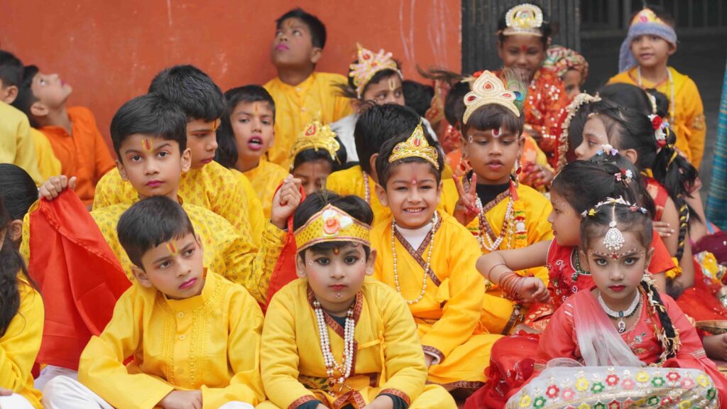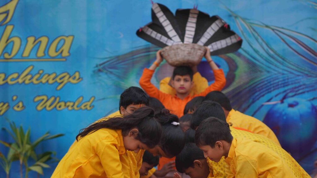 Janmashtami, the birth anniversary of Lord Krishna, was celebrated with great devotion and enthusiasm in our school. The campus was beautifully decorated with flowers, peacock feathers, and colorful rangolis. Students came dressed as Lord Krishna and Radha, adding charm to the celebration. The program began with a devotional song followed by a mesmerizing dance performance depicting scenes from Lord Krishna’s life. A special “Matki Phod” event was also organized, which brought excitement and joy among students.